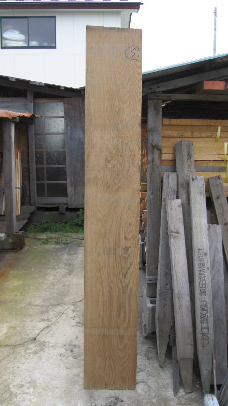 写真は(4分×尺×6.30尺) 先日、お客さんから電話が入り埋れ木を持っているんだが誰か必要とする人がいないかという電話であった。さっそくお客さんの所に行ってみると3.5角が13本、3.5×8.0の平角が1本、こちらは建具材が採れる製品であった。その他に4分の板が39枚こちらの方は木工品、茶室の腰板用か。また組子材が採れるような材も多数あった。いままで埋れ木の見積もりはあったもののほとんど県内にはないとばかり思っていたのでお断りしていた。やはり世の中広いものである。お客様から了解を得て見積もり製品に似合った物があれば見積もりをし、また私のホームページのネットショッピングにも出させてもらうことで了解をいただいた。しかし売れるか売れないかわからない私に声をかけてもらったお客様に感謝しなければならない。