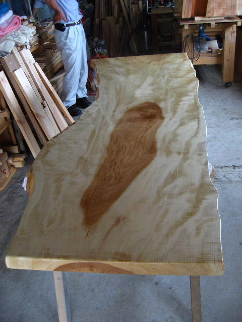 栃の一枚板、昨日お客様に発送しました。ウレタン塗装したら素晴らしい光沢が出てますます広葉樹に惚れてしまいました。広葉樹の良さってこれなんだなと思った。いつも秋田杉ばかり見てるもんだから、なおさら新鮮に感じるのかなぁ?だけど、針葉樹、広葉樹ともに無垢材って本当にいいなとなおさらの事思った一日でした。
