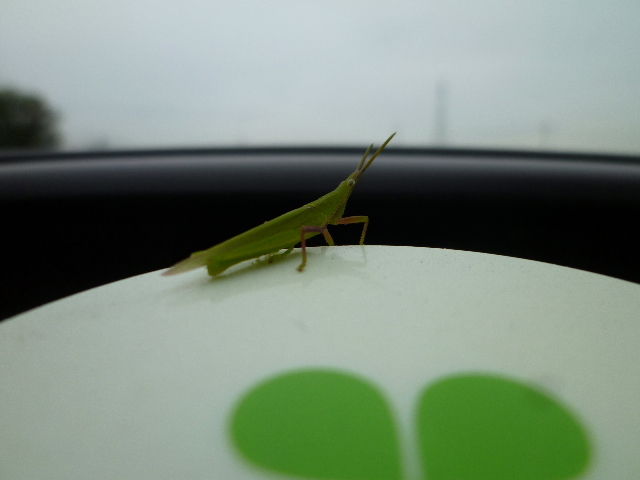 朝に車に乗って運転していたら前にキリギリスが小さくてもやはり目に止まります。